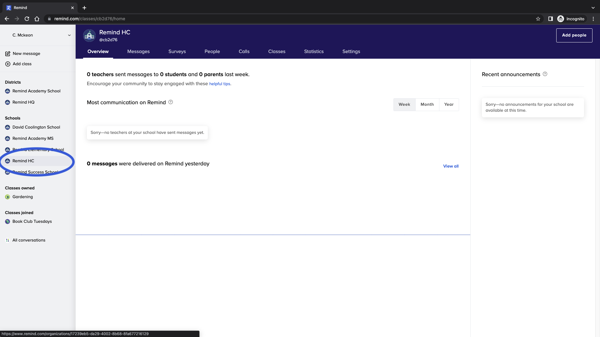 - Log in to your Remind account online.