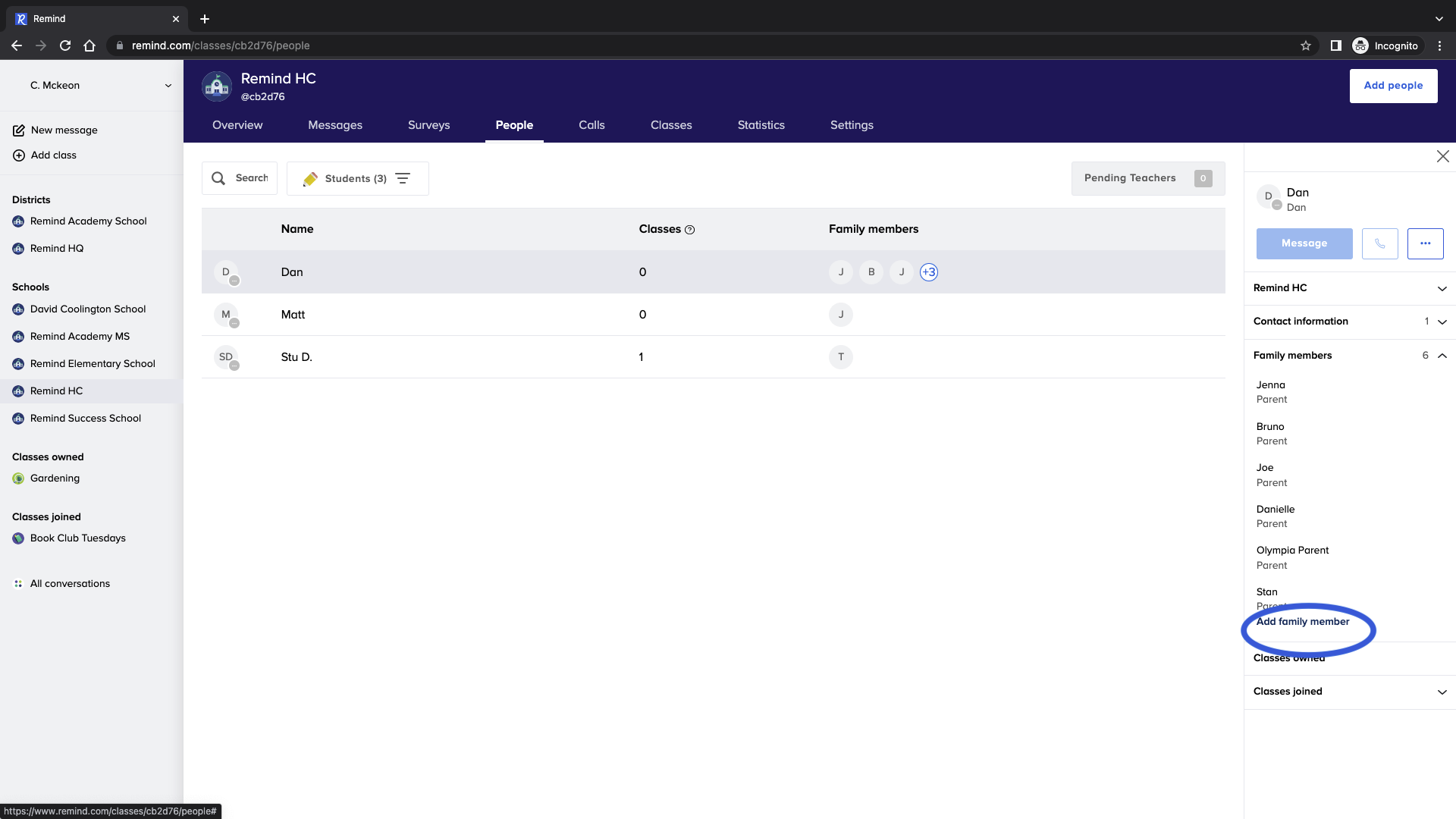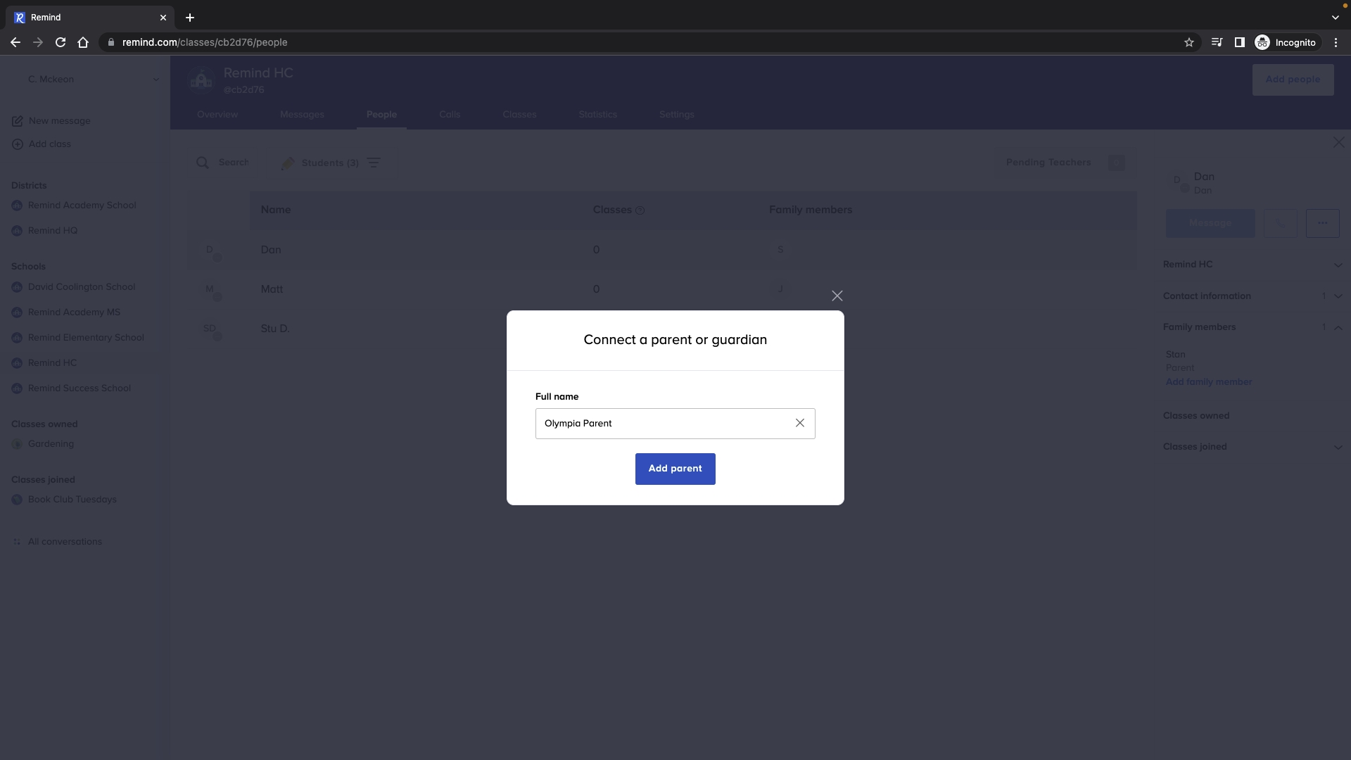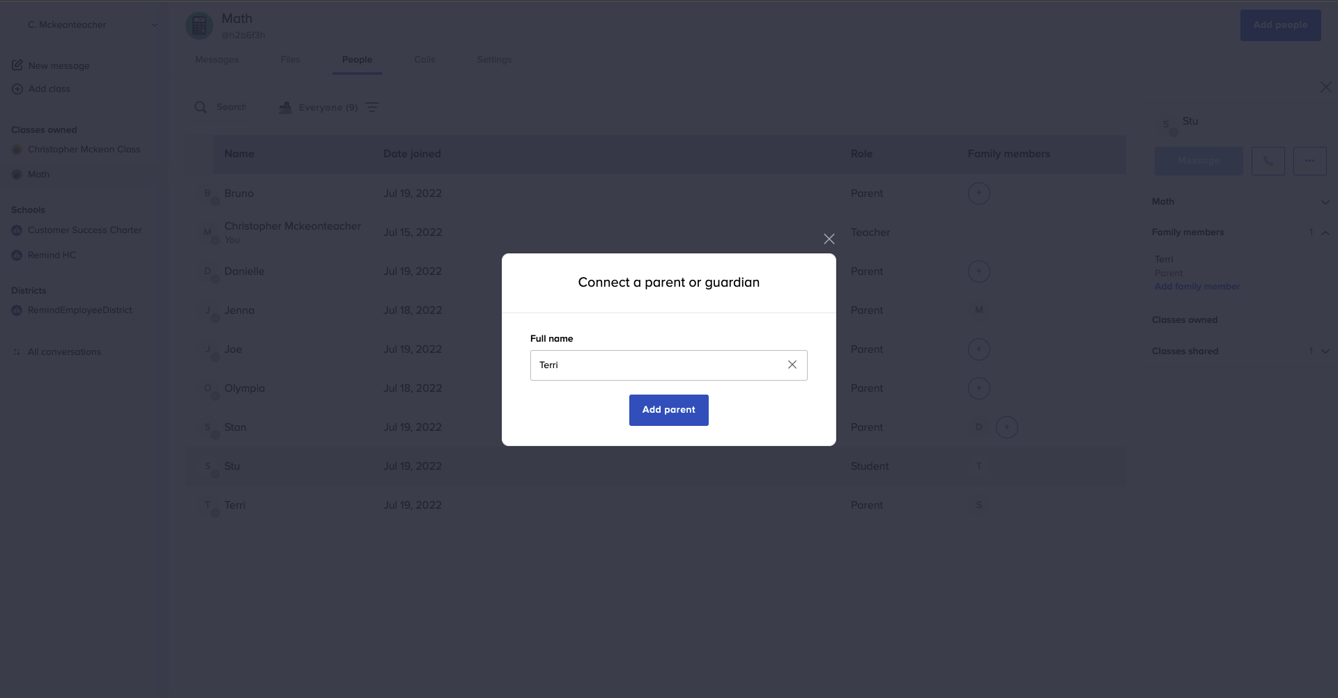 Remind Hub administrators can link student accounts with their parent/guardian accounts via SIS rostering. Throughout the school year, you may need to update those family connections. Read this article to learn how you can add family members to or remove them from your Remind account manually.