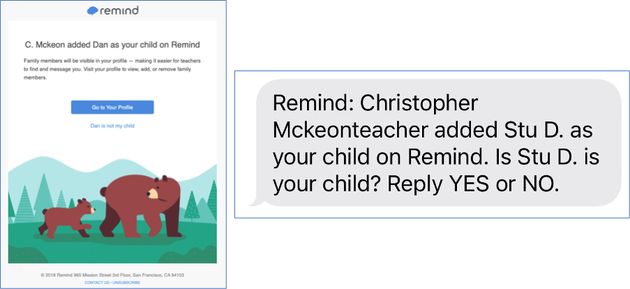 The selected student or parent will be notified via e-mail and/or SMS. They have the option to keep or remove the family connection.