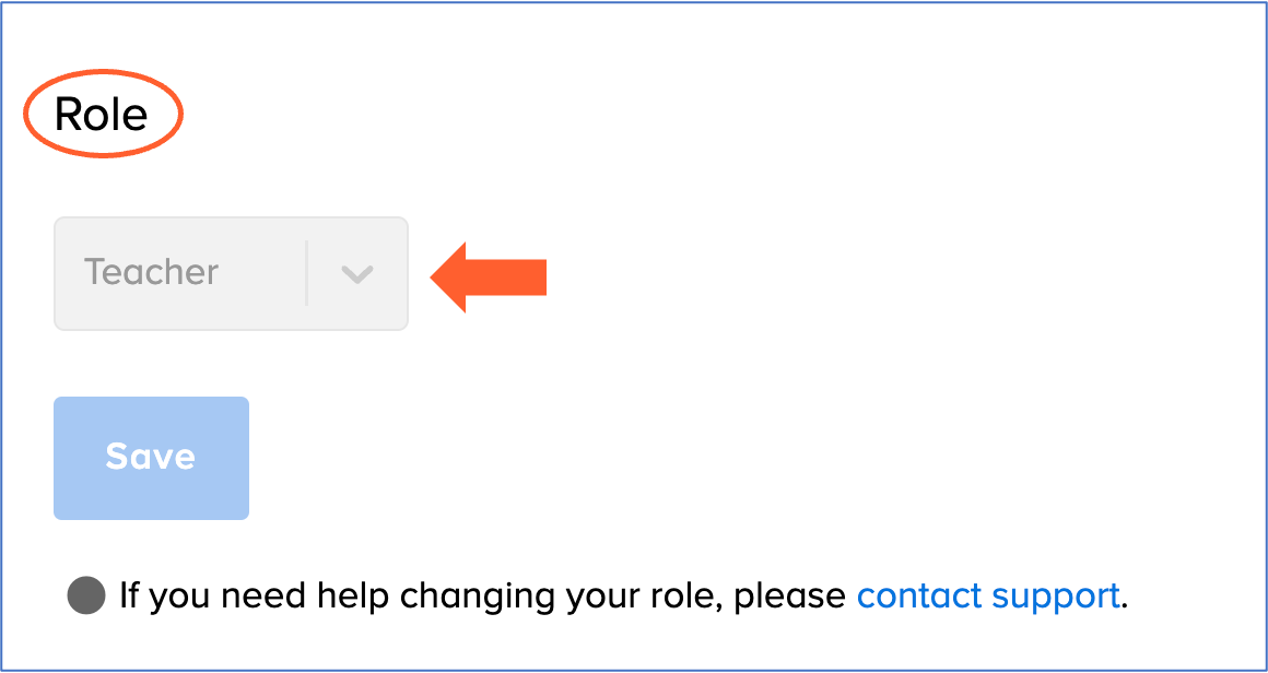 If you see a Parent or Student role instead, please reach out to our Support Team by sending them a message here. Our team will need to verify you're a teacher at your organization; so be sure to include your school's website - where your name, position, and the same email address your school used to create your account appear.
