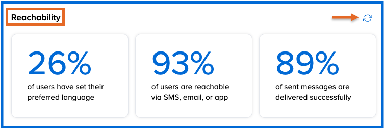 - Bar chart - the number and percentage of people whose email, SMS, or app is set up to receive messages, who have opted out of receiving messages, or who don't have a phone number, email, or app associated with their account.