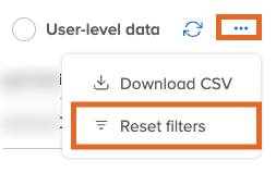 Click any section of a chart on the Statistics dashboard to get more detailed information about the individuals in your community. You can also click User-level data on the top right of each chart, click on the three horizontal dots, and select Download CSV to obtain a file.