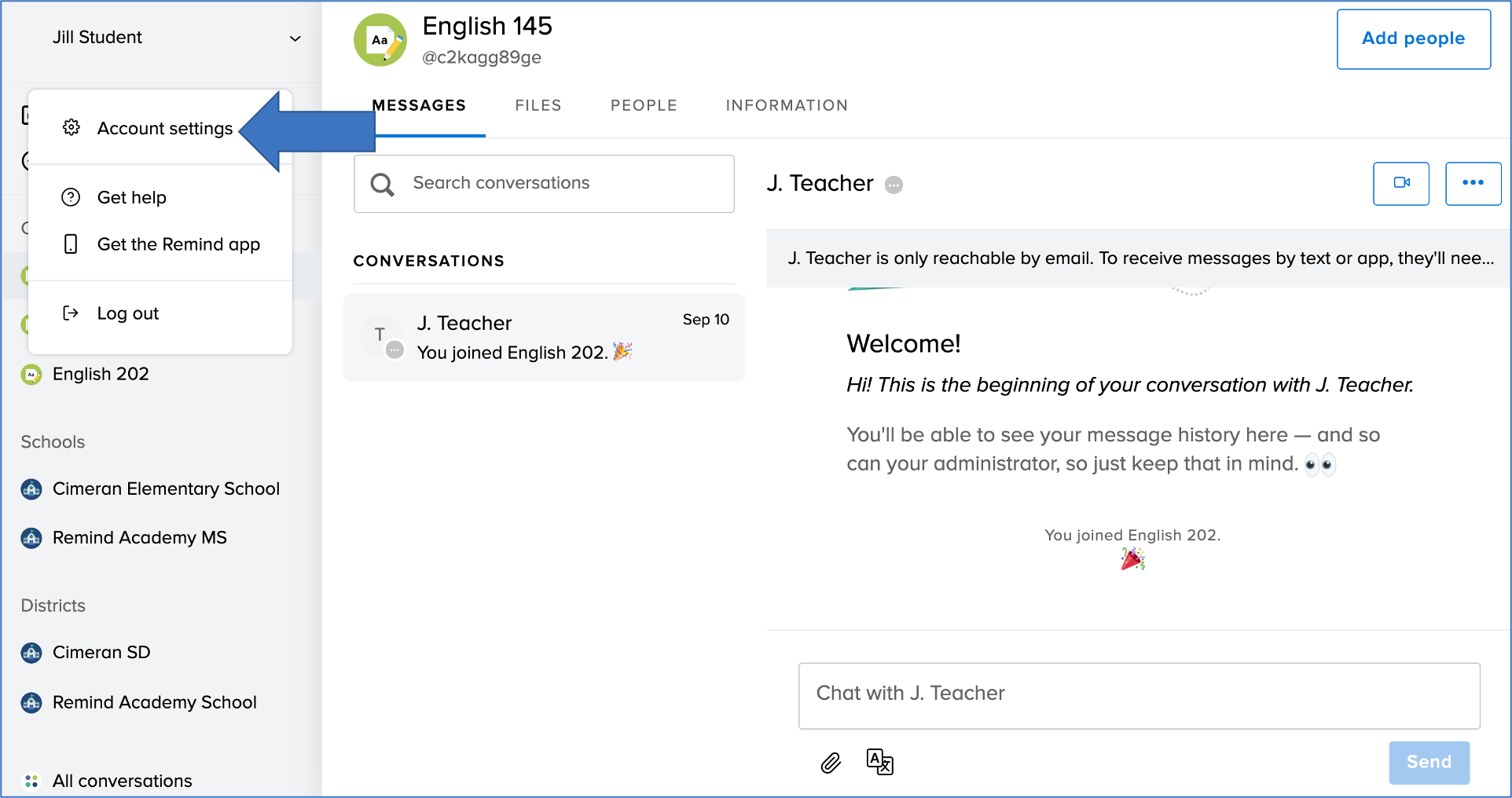 Remind Hub teachers and administrators can see your rostered name on their dashboard. For example, if your administrator creates a rostered account for you with the name Jill Student, and you edit your name to show your nickname JJ, your administrators and teachers will see both names on their dashboard.