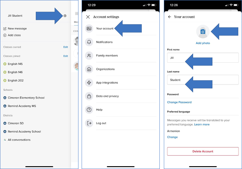 You can change your profile via your Remind account online or within the Remind app. Administrators and teachers will see any changes you make to your profile on their dashboard.