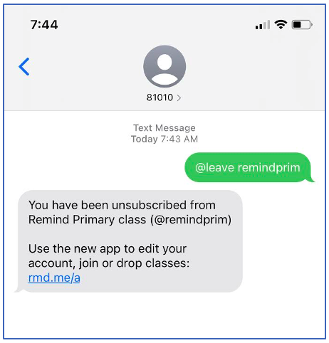 - You can always text @STOP to 81010 as well to block all texts from Remind.