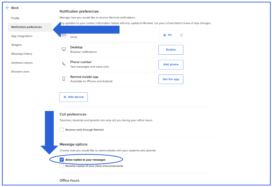 - If you've downloaded the Remind app, please review your Notification preferences, and make sure your email and/or phone number is turned on.