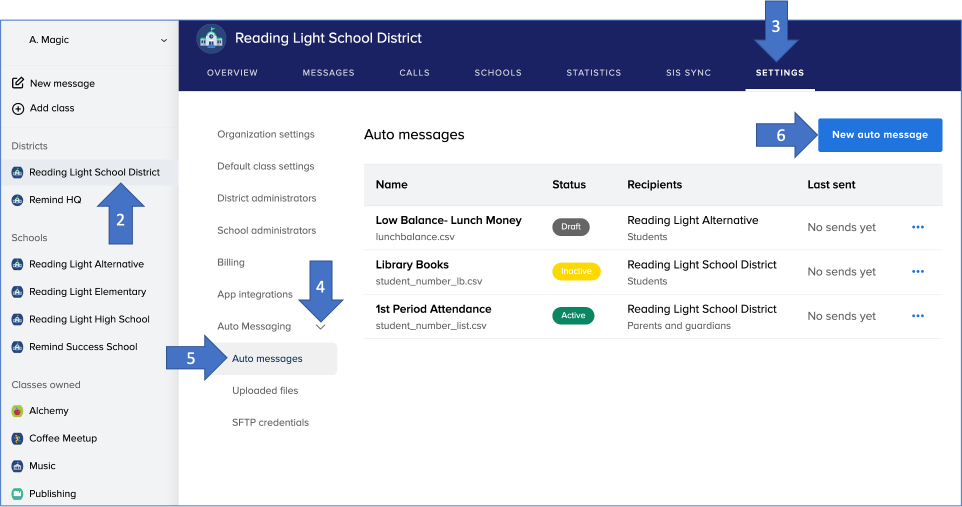 To send an auto message, you must have first completed a SIS sync within the last 90 days. If you haven't created rostered accounts for your community members yet, click here to review the rostering steps that you need to complete with the Remind Rostering Implementation Team.