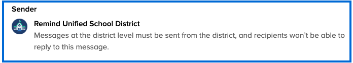 • District messages will be sent from the district, and replies will be disabled. AutoMessages-DistrictSender.png