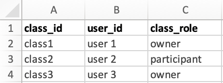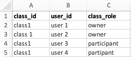 This required file is used to enroll people in classes. Classes can have multiple owners.