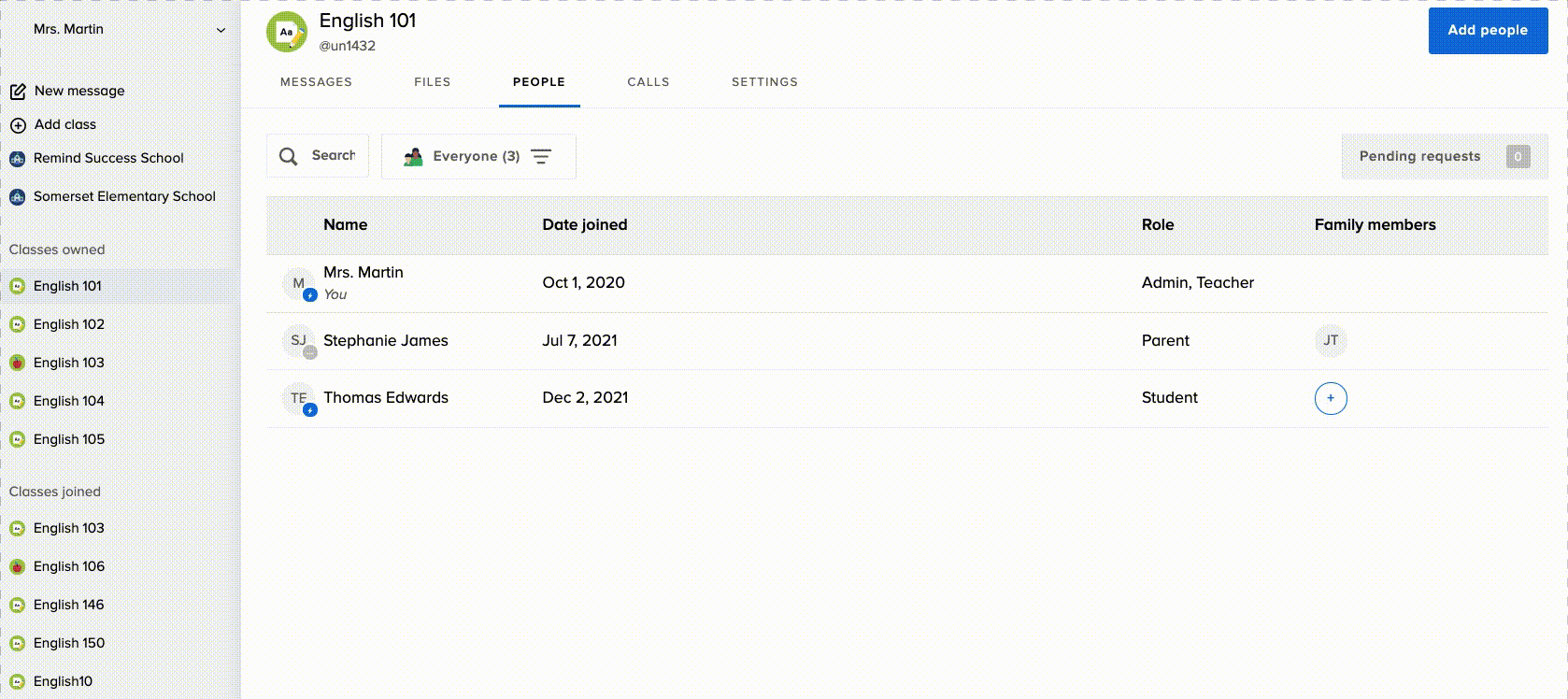 - Refresh your page and the class will now be listed under Classes joined.