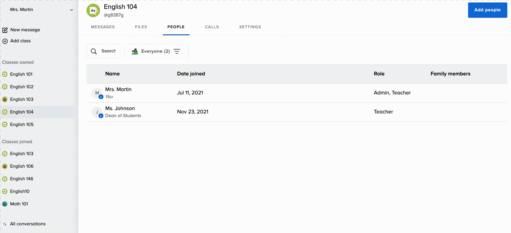 There are two ways you can add a co-owner to a class. You can add them through the Settings or the People dashboard of your class.