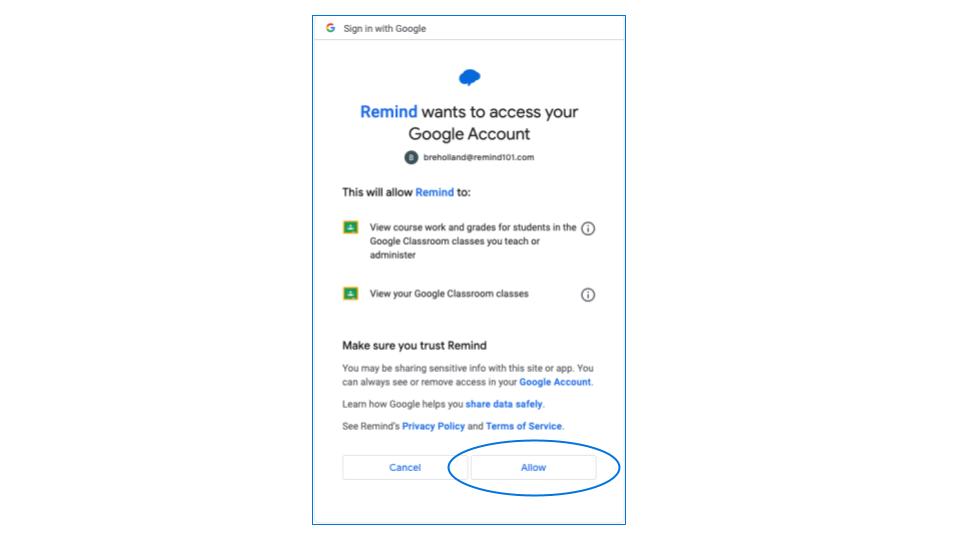 - Click Allow to give us access to your Google Classroom course work, grades, and classes.