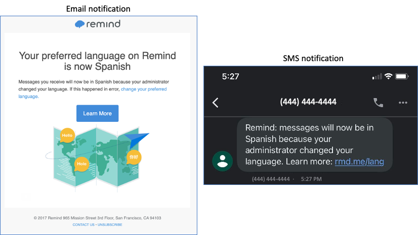 Note 2: The preferred language feature is only available on the latest version of the Remind app. All iOS and Android app users must first update their Remind app to the latest version to use the feature.