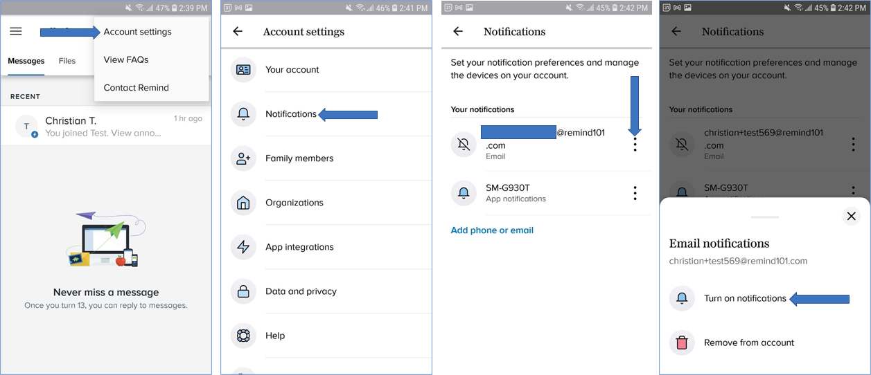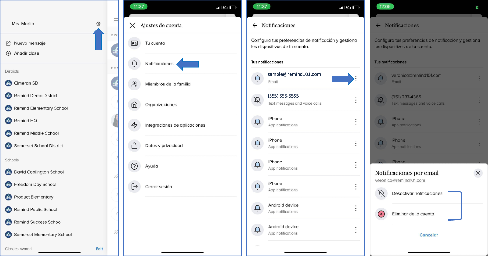 Nota 3: Mantenga siempre su cuenta de Remind actualizada con su información de contacto más reciente y notifique a su organización si cambia su número de teléfono y/o correo electrónico. Esto asegurará que reciba sus mensajes y también evitará que otra persona obtenga acceso a su cuenta.