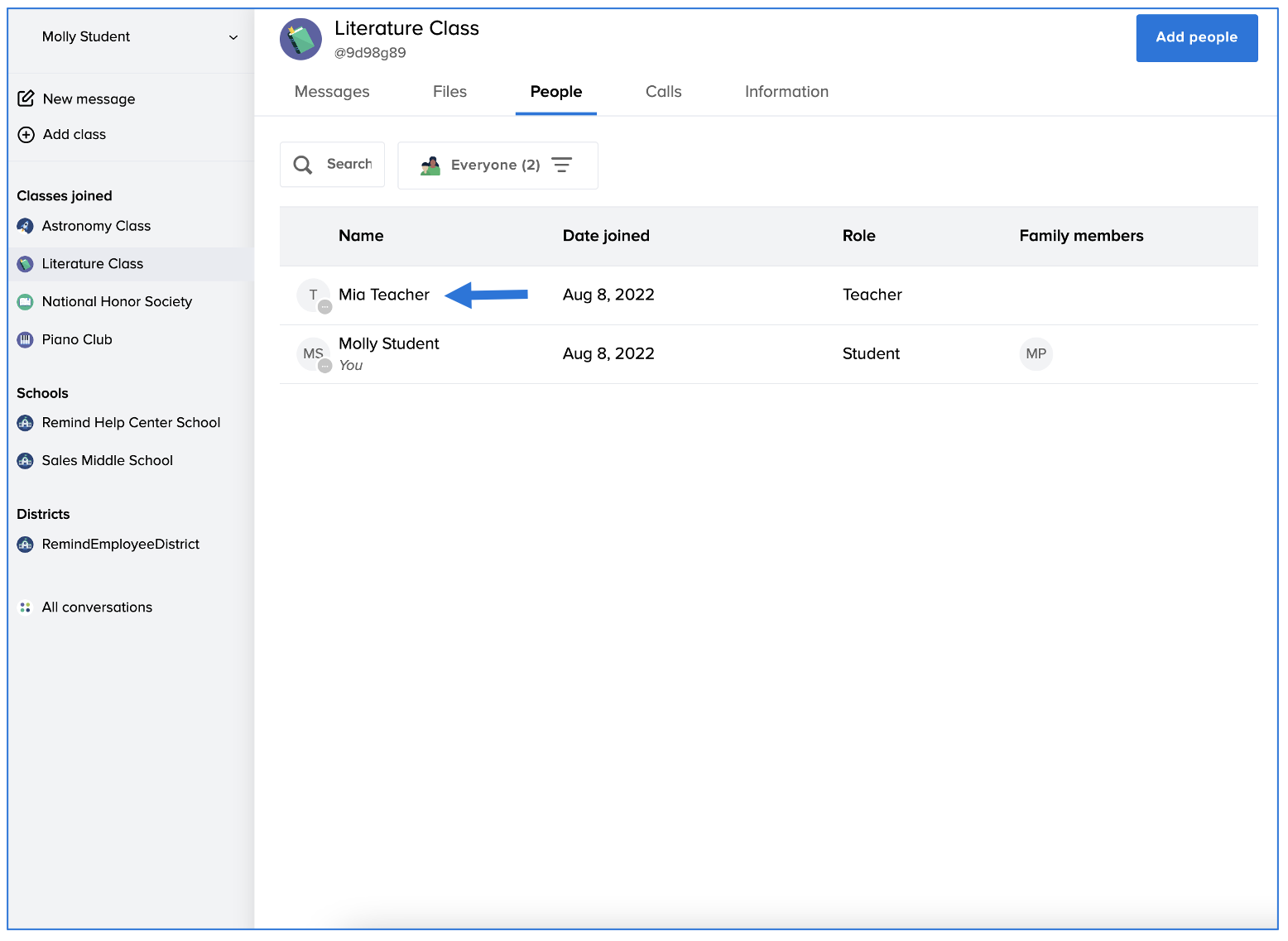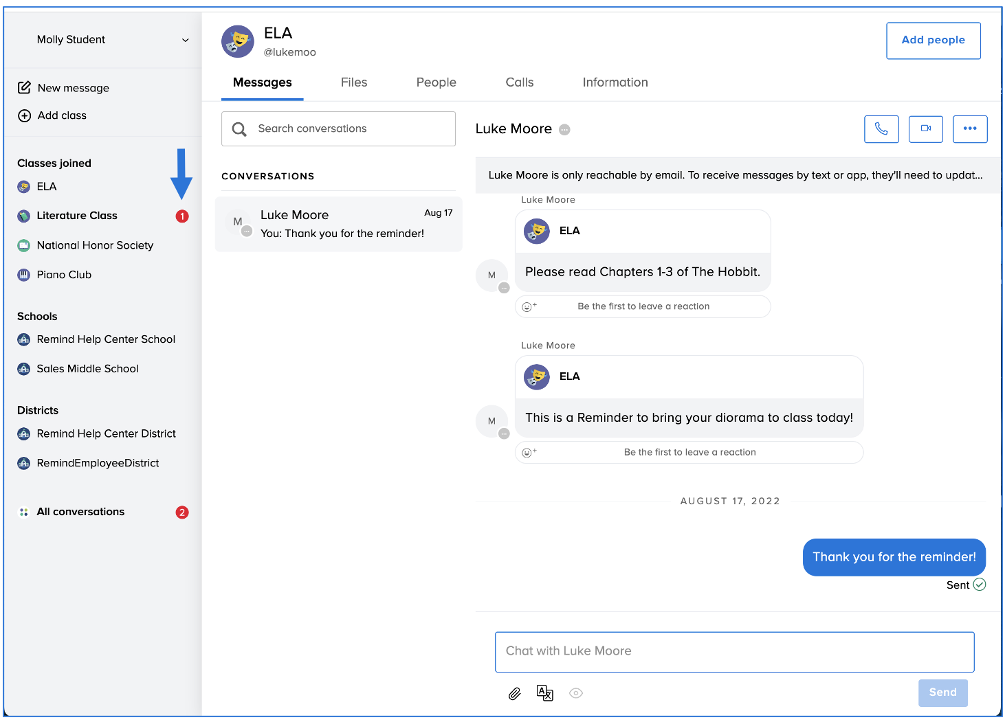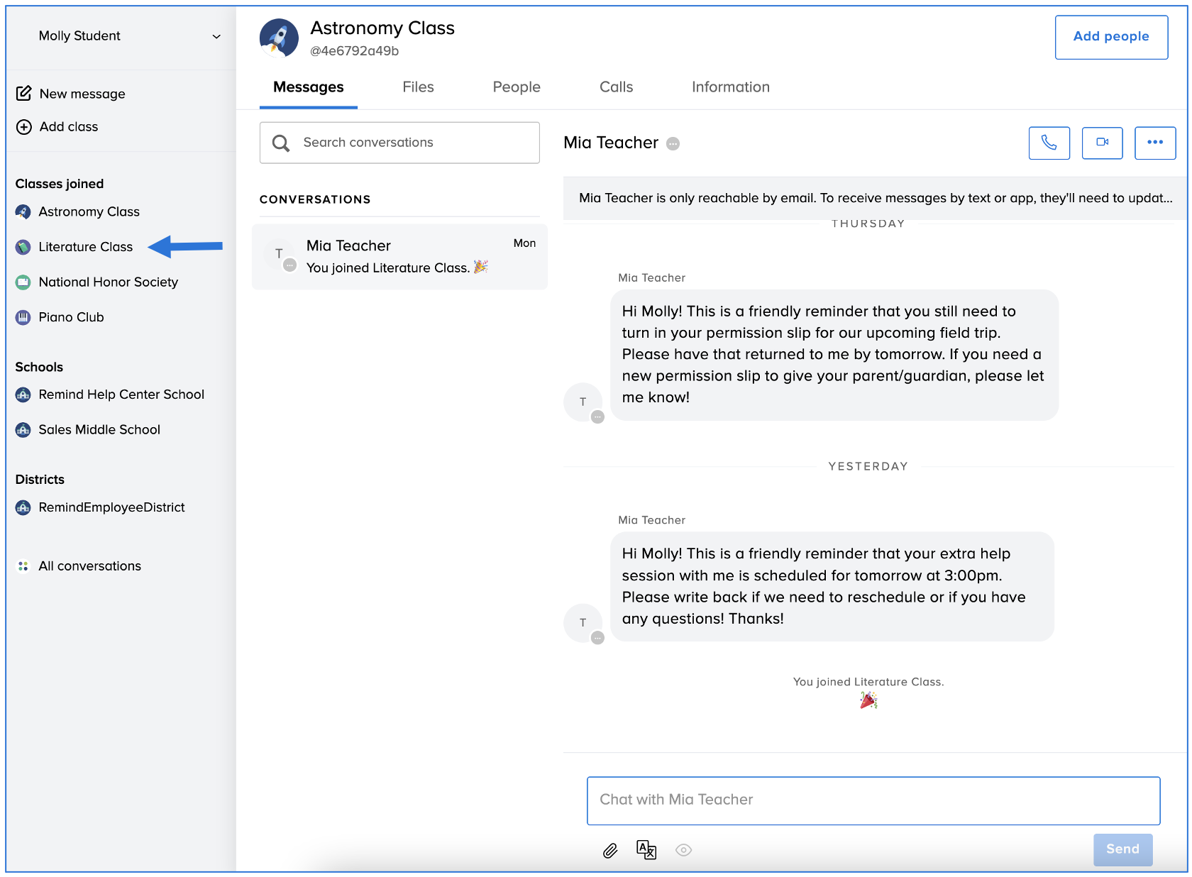 - Send a message to your teacher or administrator from the People list (for Remind Hub users only)