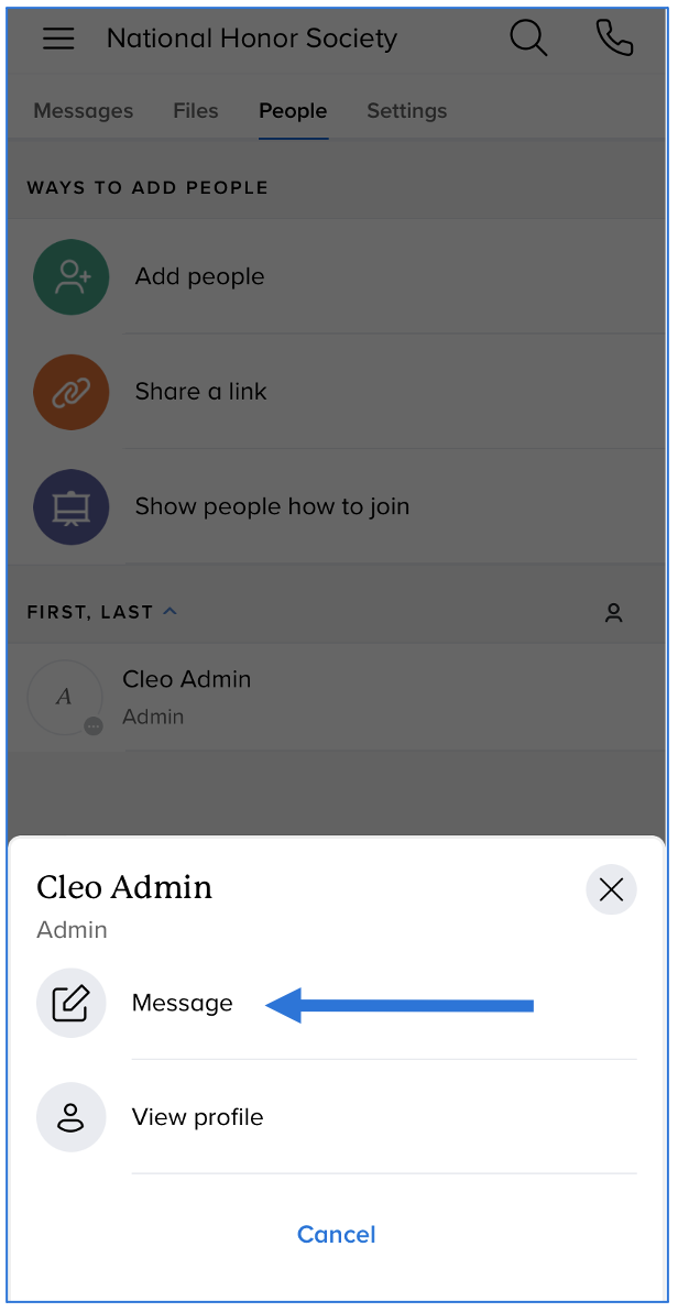 Send a message to your teacher or administrator from the People list (for Remind Hub users only)