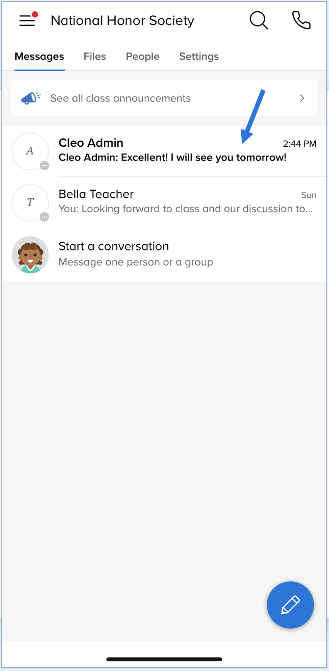 - Tap on the class with the red notification alert.