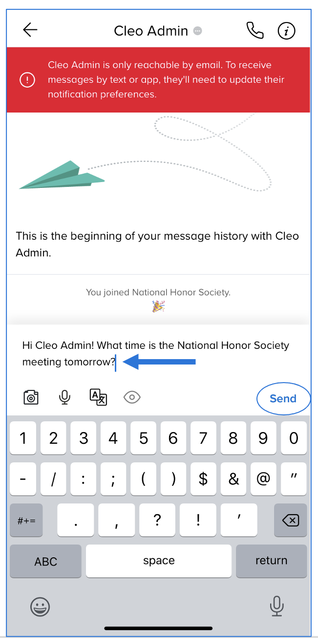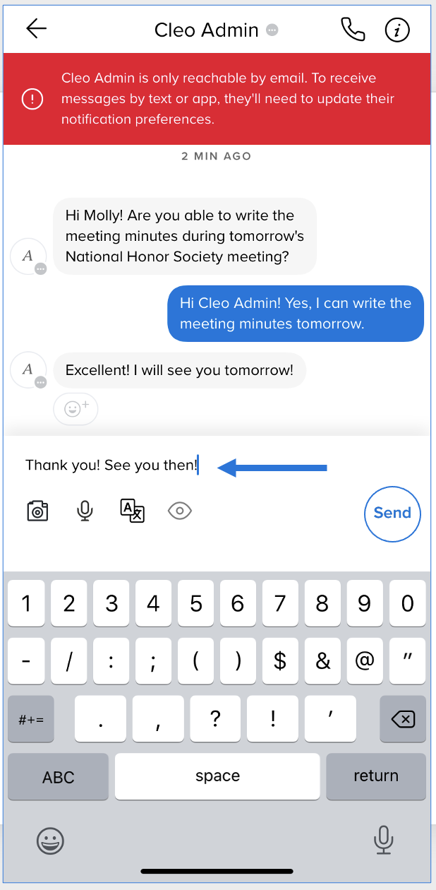 - Type your message and tap Send.