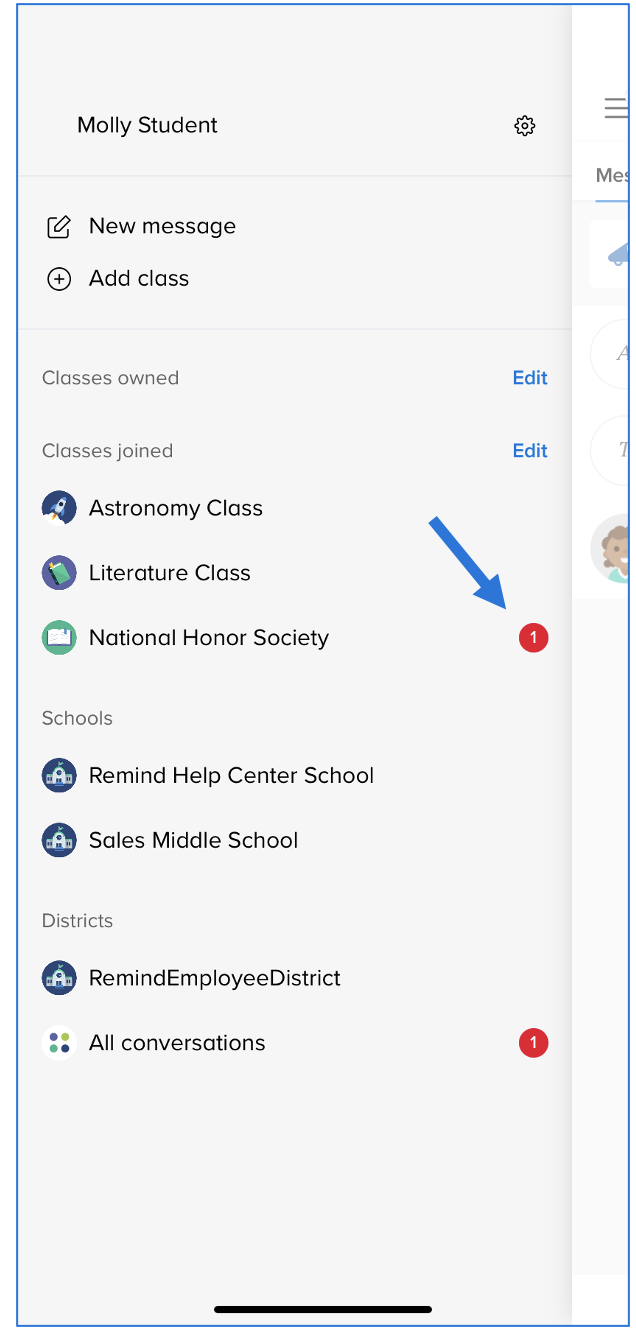 - Tap on the class, school, or district with the red notification alert.