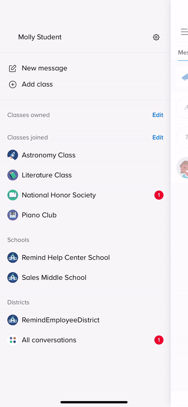 - View and respond to a message sent by your teacher or administrator (for all Remind users)